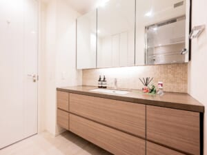 また、洗面台は横幅もあり十分な収納スペースを確保できます。