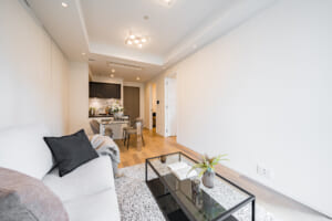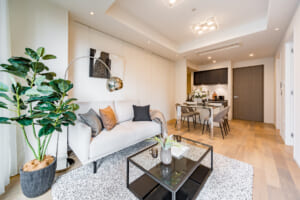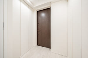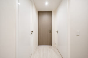 壁面にはピクチャーレールが埋め込まれており、お部屋のデザイン性を底上げしてくれます。また、間取が綺麗で家具、インテリアを配置するうえで自由度の高いお部屋となっています。
