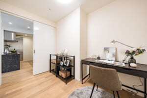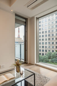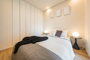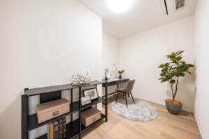 こちらのお部屋も他のお部屋同様埋め込み式のエアコンが採用されており、スタイリッシュな印象を受けます。