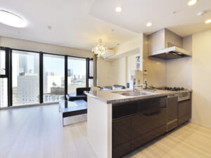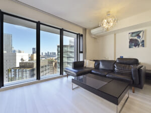 窓はダイレクトウィンドウで梁がないため、上下左右と都会の風景を一望できます。