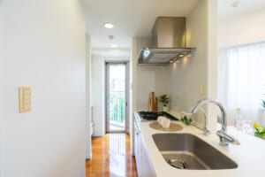 ワークトップが広く、調理も配膳もスムーズにこなせます。