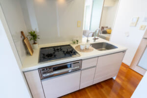 グリル付きコンロで、お魚料理も手軽に楽しめます。
