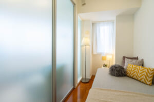 やわらかな光が差し込む、静かなプライベート空間。シンプルな内装が、落ち着きと安らぎをもたらします。読書や休息など、一人の時間をゆったりと過ごせる一室です。