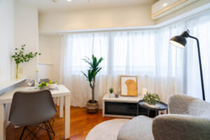 観葉植物やアートが映える、シンプルで上品なインテリアも魅力です。