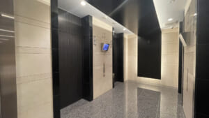 天井高とガラスウォールが開放感を演出する、圧巻のエントランスホール。重厚感ある石張りの床や流線型のエスカレーターが、まるで高級ホテルのロビーのような上質な空間を創り出します。訪れる人を迎える洗練された迎賓空間が、タワーレジデンスとしての誇りを物語ります。