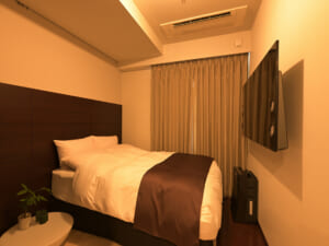 天井埋込型のエアコンが設置された寝室は、無駄がなく空間を広く感じられる設計です。窓があり、外光をコントロールしやすく、快適な睡眠環境が整います。空間全体に統一感があり、ホテルライクな心地よさを感じられます。