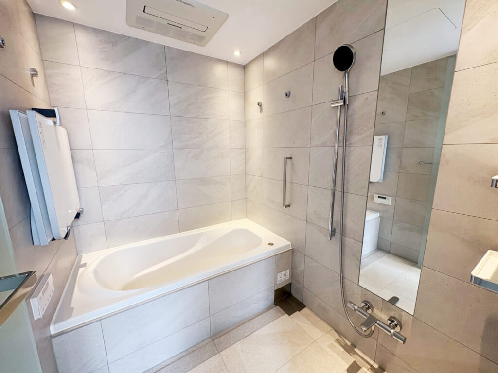 ゆったりとした浴槽で一日の疲れを癒すことができ、心地よいバスタイムを楽しめます。