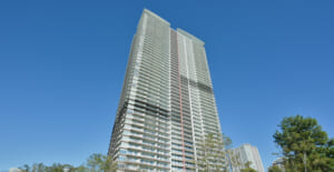 空へと大きく伸びる端正なシルエットが印象的なタワーレジデンスです。