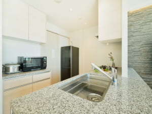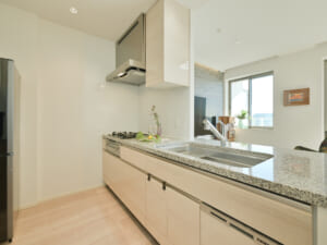 すっきりと納められた収納や設備配置により、視界に雑多さを感じさせない点も魅力。