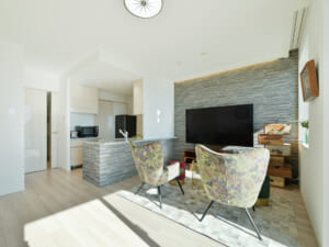 家具の配置もしやすいゆとりある広さが確保されており、寛ぎの時間から来客時まで、さまざまなシーンに対応できるリビングです。