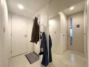 白を基調とした清潔感のある玄関空間。