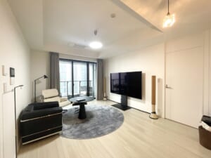 装飾を抑えたシンプルな内装が、都心の住まいらしい静かな上質感をつくっており、1日の終わりを穏やかに過ごせる雰囲気があります。